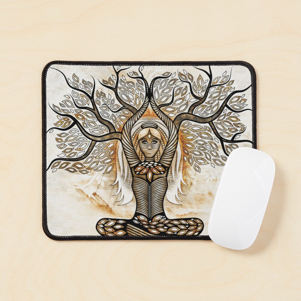 A shaman woman (Shamanka) tree offering grounding to Mother Gaia in autumn and earth colors.